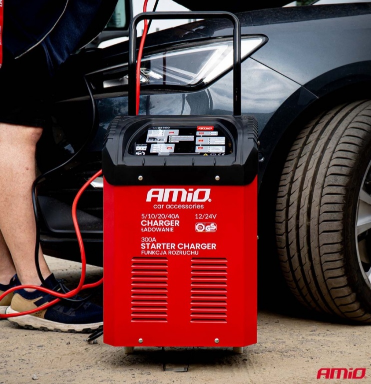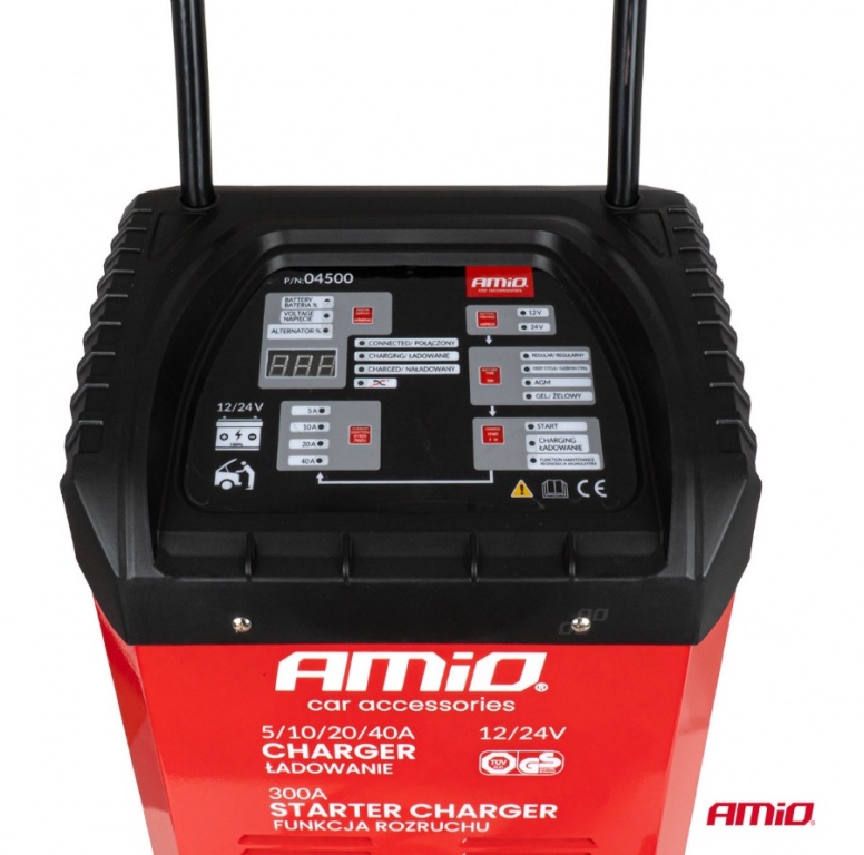 Akumulatora lādētājs ar palaidēju , maks. 40A, 12V, 24V, palaišanas strāva 300A-Amio 04500