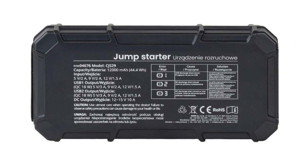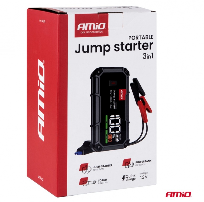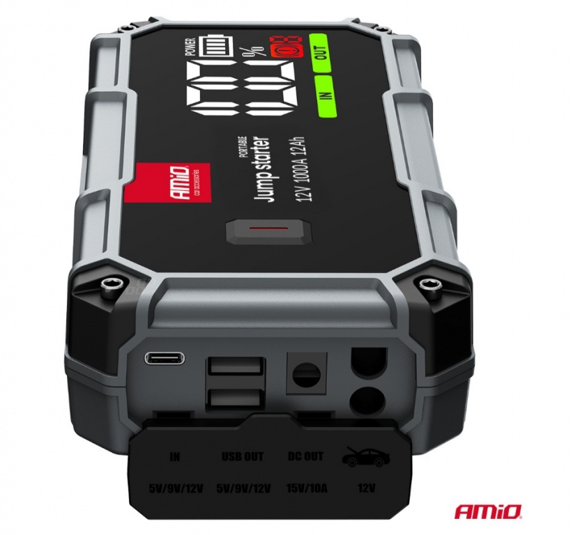 AMiO 3-in-1 palaišanas ierīce ir moderna un efektīva ierīce, kas apvieno palaišanas ierīces, ārējās baterijas un LED lukturīša funkcijas. Aprīkota ar skaidru LCD displeju, tā nodrošina pilnīgu kontroli pār ierīces darbību un uzlādes stāvokli. Pateicoties augstajai akumulatora ietilpībai un augstajai iedarbināšanas strāvai, tā ir ideāli piemērota profesionālām vajadzībām un ikdienas lietošanai autovadītājiem.