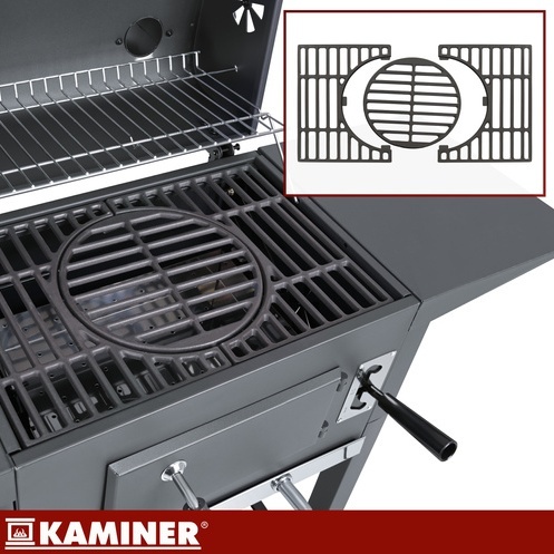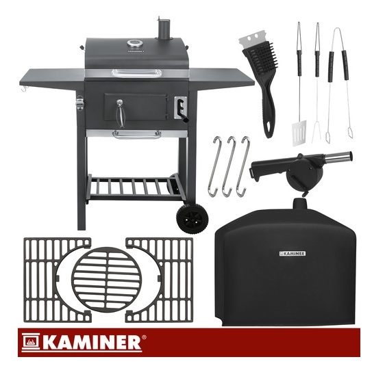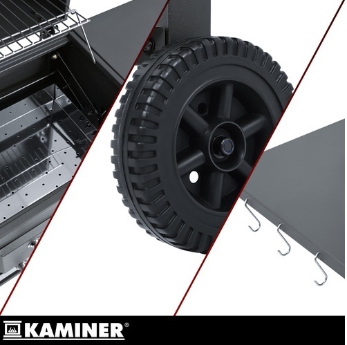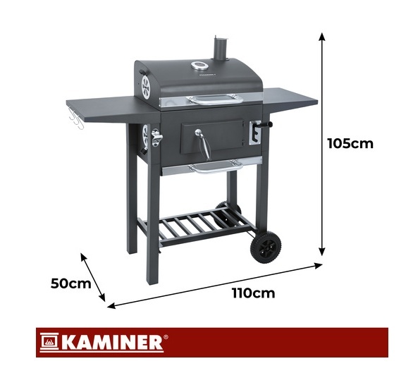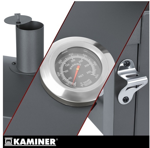 Apnicis grils, kas pēc sezonas šūpojas, ātri zaudē krāsu un neuztur temperatūru? KAMINER Šis ir izturīgs grils ar neiznīcināmu čuguna režģi, 1 mm biezu metāla loksni, vāku ar termometru un regulējamu kurtuves augstumu, kas atvieglo perfektas gatavības sasniegšanu. Jūs saņemat arī praktiskus piederumus un vāku, lai grils būtu gatavs jūsu nākamajai dārza salidojumam.