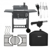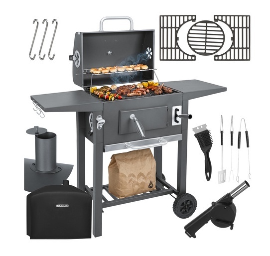 Dārza ogļu grils, čuguna režģis, skurstenis ar vāku, pelnu panna + termometrs