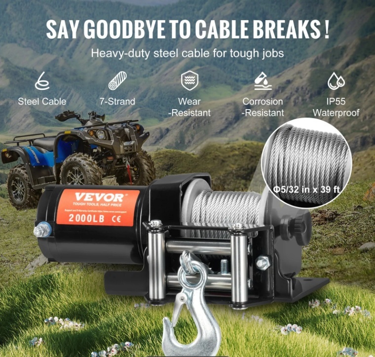 VEVOR elektriskā vinča ATV , UTV 907 kg , tērauda trose , IP 55 ūdensizturīga vadu vadība