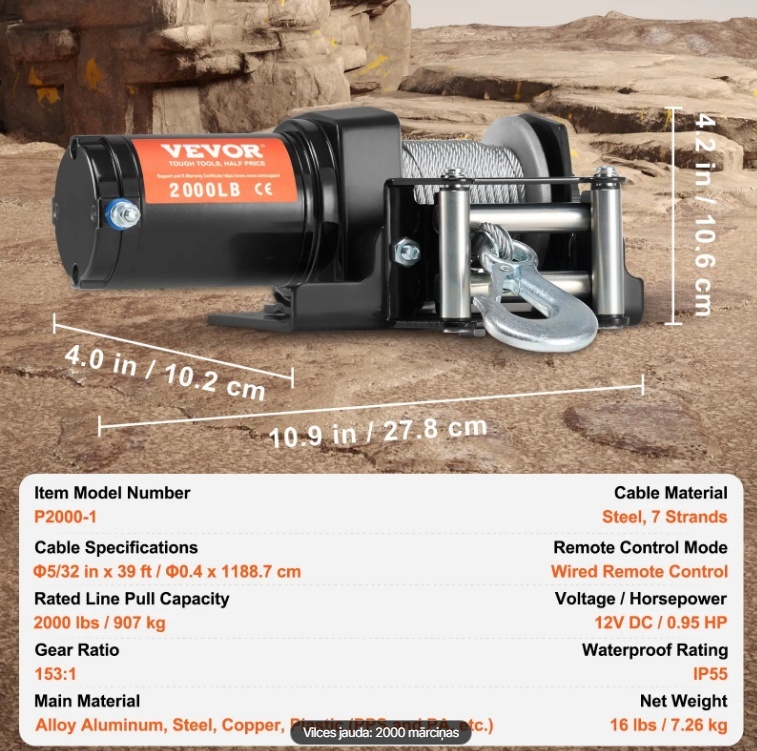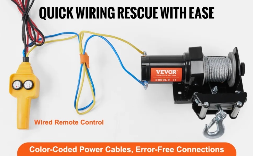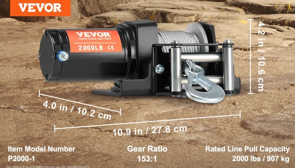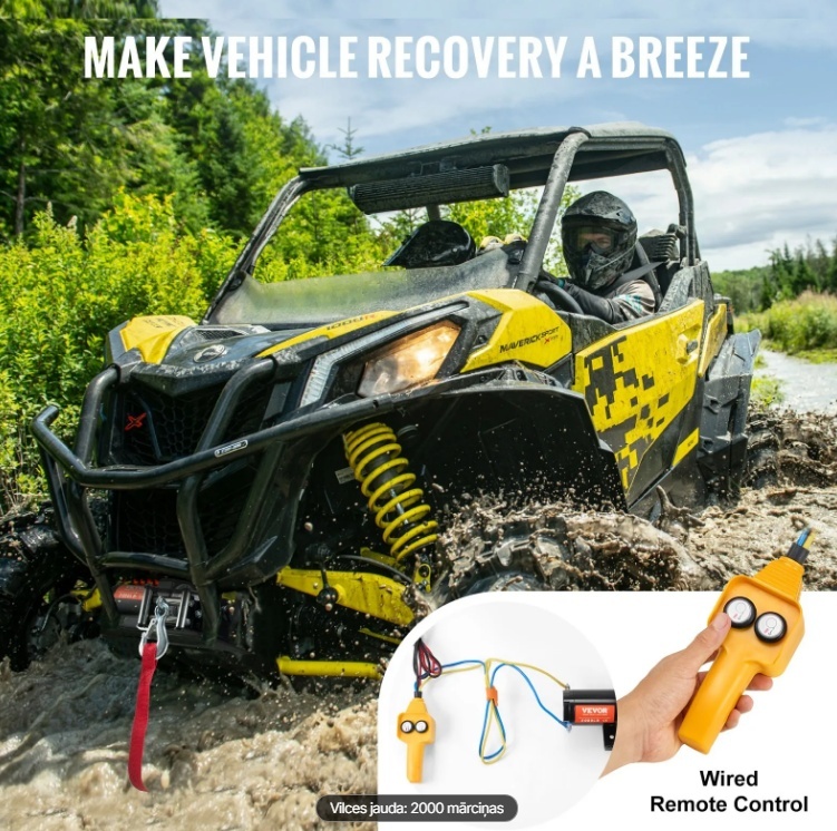 Jūsu transportlīdzekļa rezerves jauda: Mūsu jaudīgā elektriskā vinča, kas īpaši izstrādāta evakuācijai bezceļos, piedāvā jaudīgu 2000 mārciņu vilkšanas jaudu. Kad jūsu transportlīdzeklis iestrēgst dubļos vai nonāk lietusgāzē, šī vinča nodrošina papildu piedziņu, kas nepieciešama, lai ātri atgrieztos uz pareizā ceļa. Ideāli piemērota mazu transportlīdzekļu, piemēram, kvadraciklu un UTV, vilkšanas darbiem, nodrošinot, ka jūsu piedzīvojumi nekad neapstājas.