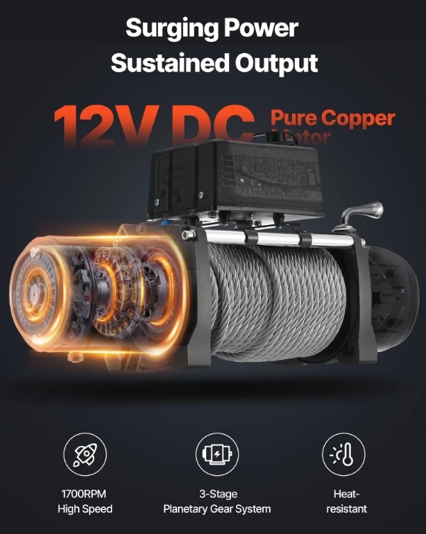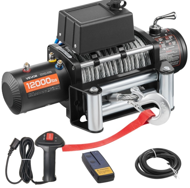 VEVOR elektriskā vinča, celtspēja 5400 kg, 12 V līdzstrāvas vinča ar Φ9,1 mm x 26 m tērauda trosi