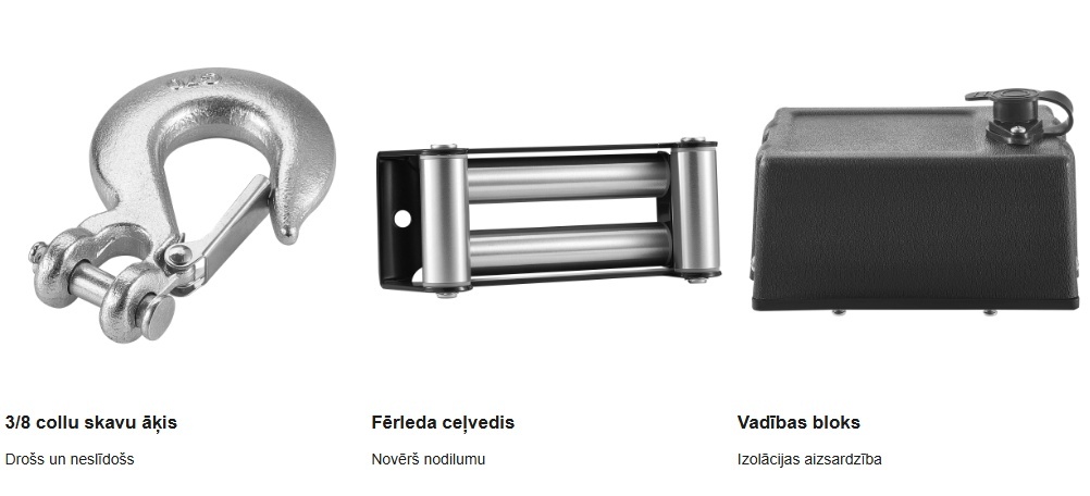 Plaša saderība: Universālais montāžas modelis ir piemērots lielākajai daļai apvidus auto, pikapu un džipu. Vilkšanas vinčas komplektā ietilpst vadotne, āķis un strāvas kabeļi — gatavi ātrai uzstādīšanai un lietošanai.