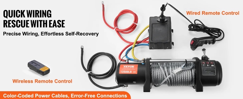 VEVOR elektriskā vinča 6123 kg ar tērauda trosi , IP65 ūdensizturīgs , tālvadības pults