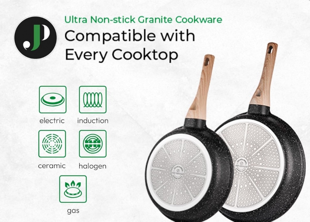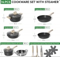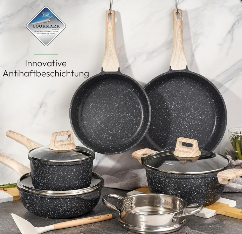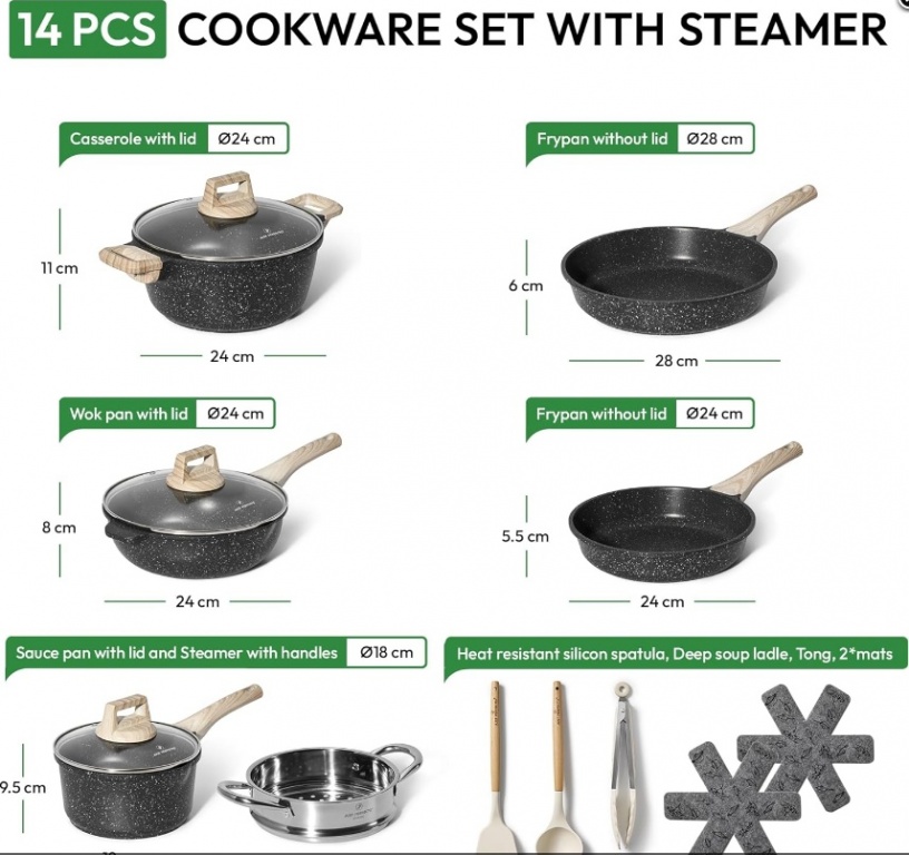 Just Perfecto JL-30: 14 daļu granīta virtuves piederumu komplekts ar tvaicētāju - melns