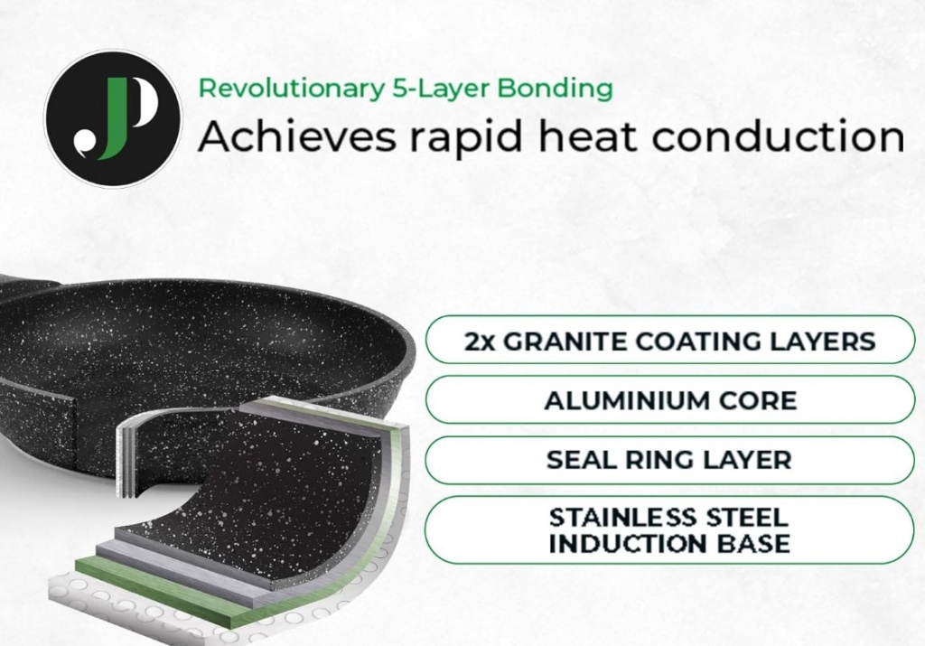 5. slānis: īpaša indukcijas pamatne, kas ir saderīga ar visiem siltuma avotiem, tostarp indukcijas plītīm.