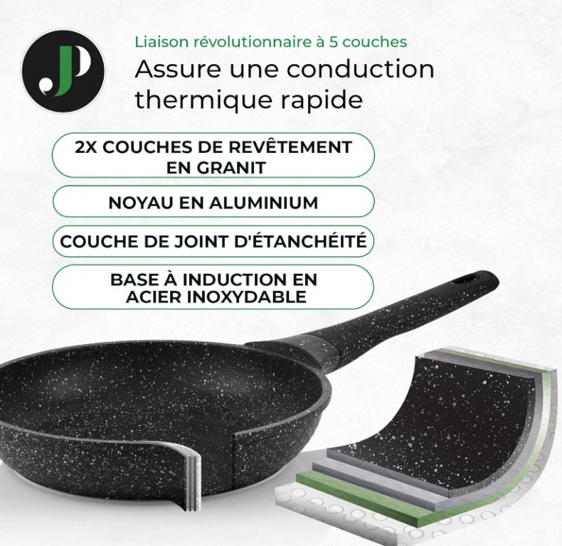 5. slānis: īpaša indukcijas pamatne, kas ir saderīga ar visiem siltuma avotiem, tostarp indukcijas plītīm.