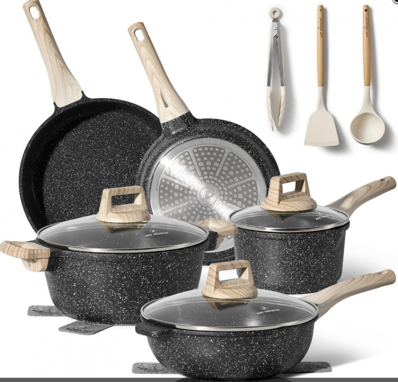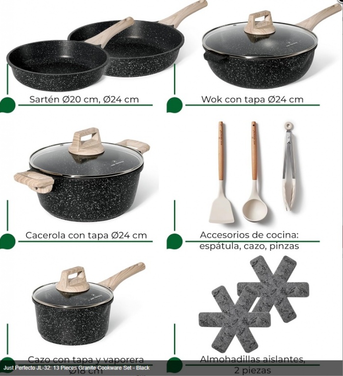 Just Perfecto JL-32: 13 daļu granīta virtuves piederumu komplekts - melns