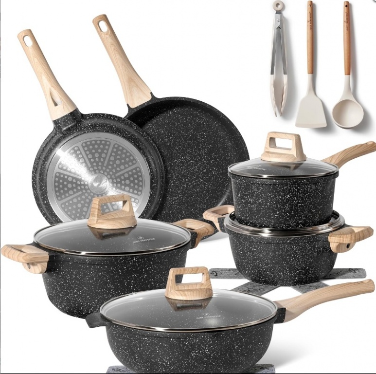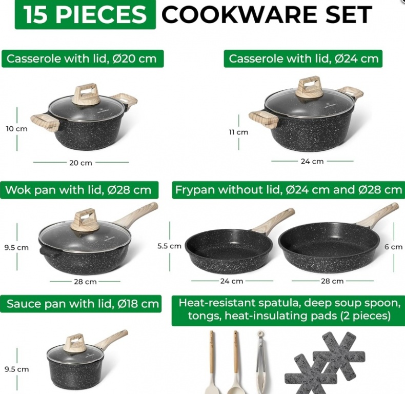 Just Perfecto JL-789: 15 daļu granīta virtuves piederumu komplekts - melns