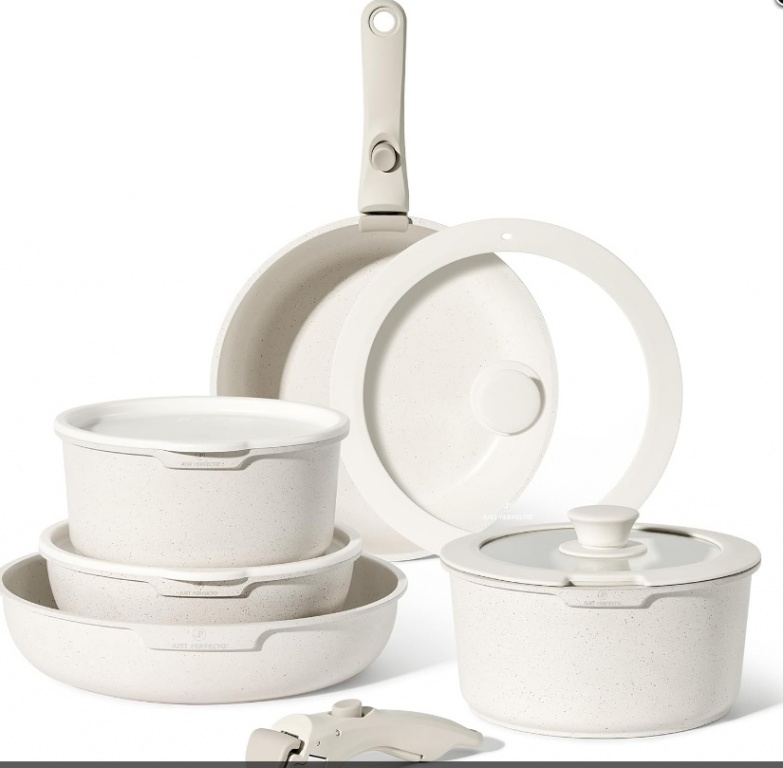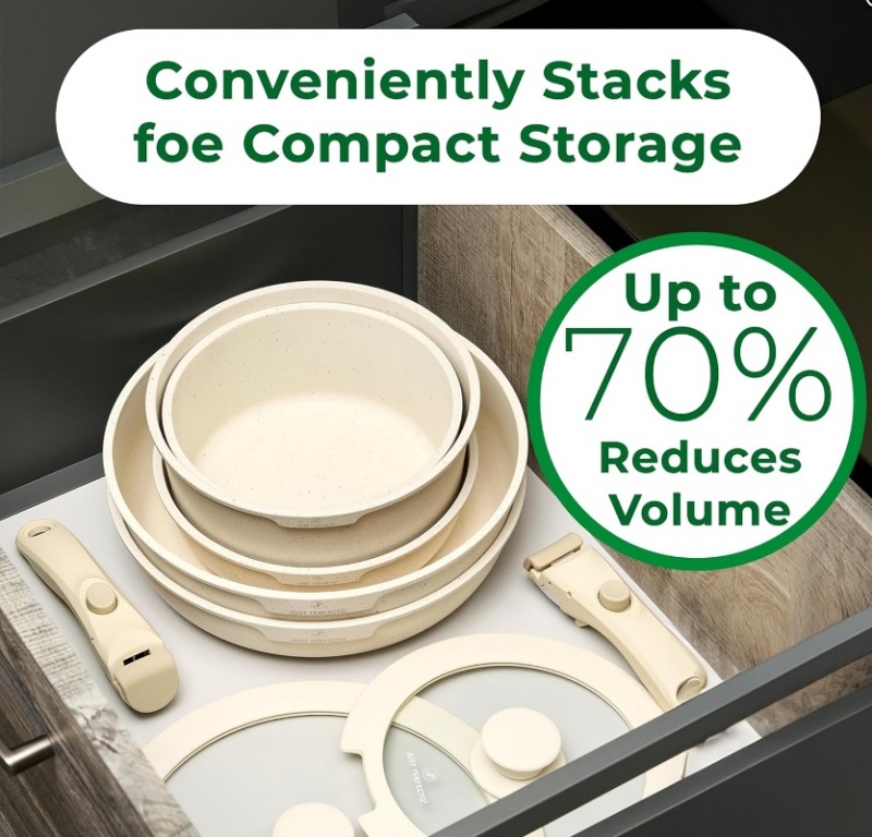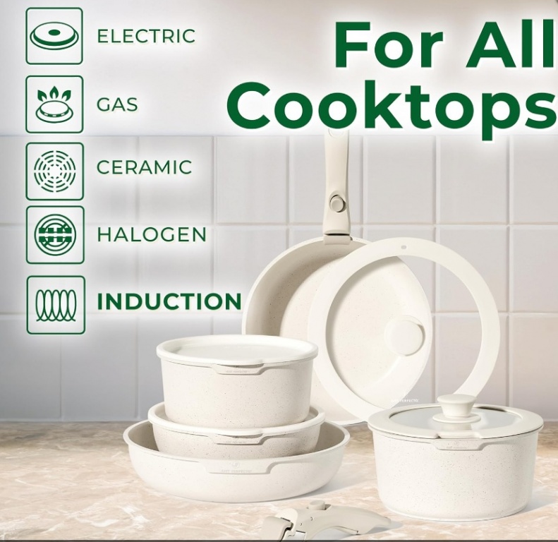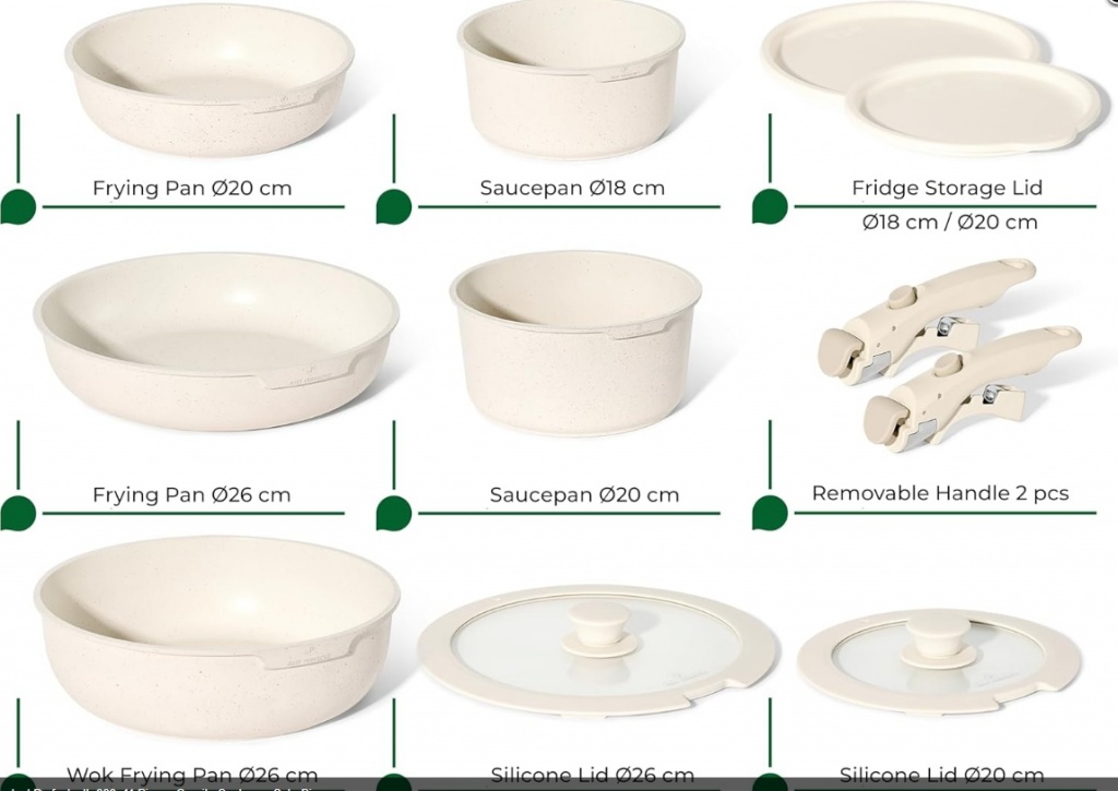 JUST PERFECTO 11 daļu indukcijas virtuves piederumu komplekts ar nepiedegošiem granīta katliem un pannām, kā arī tvaicētāju (bēšā krāsā), bez PTFE un PFOA