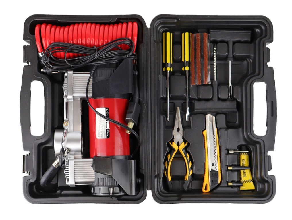 Spēcīgs, 2 cilindru metāla kompresors + maiss