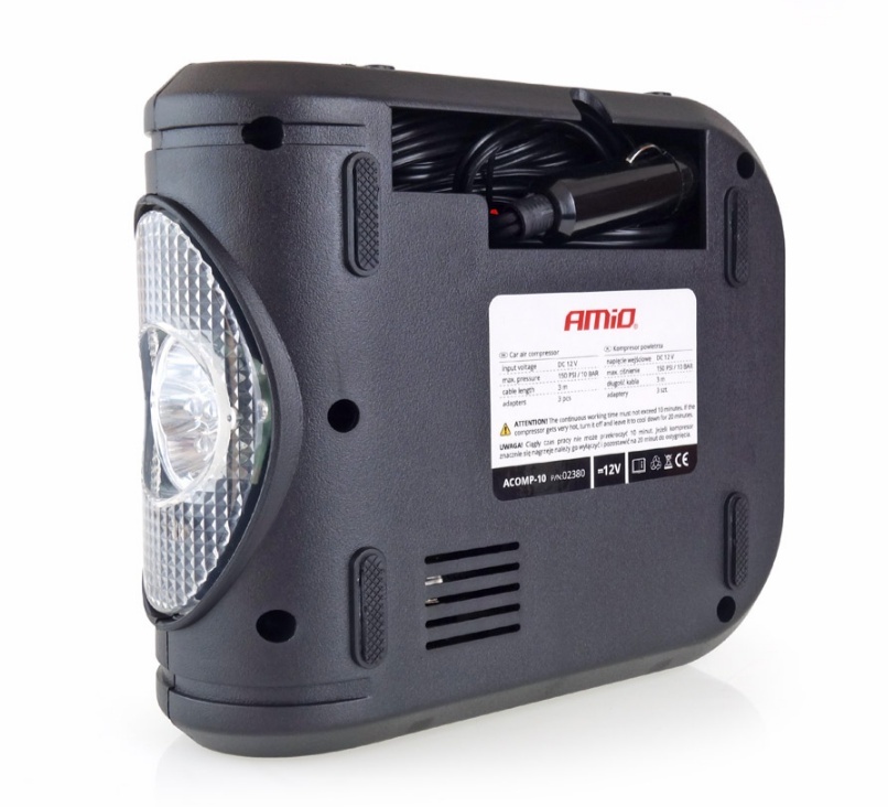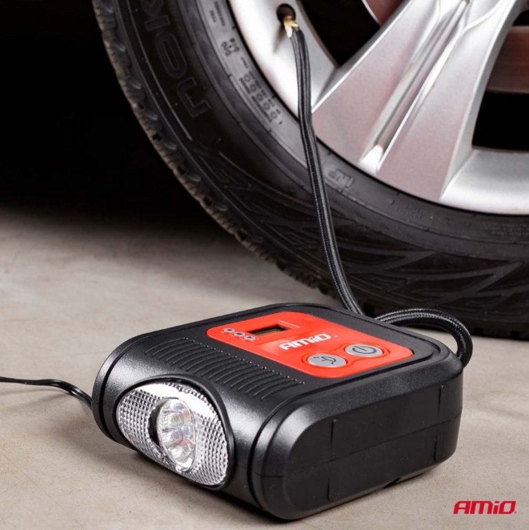 Automašīnas gaisa kompresors ar digitālo spiediena mērītāju un LED apgaismojumu 12V , Acomp-10 Amio 02380