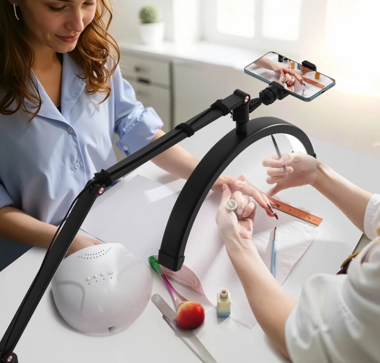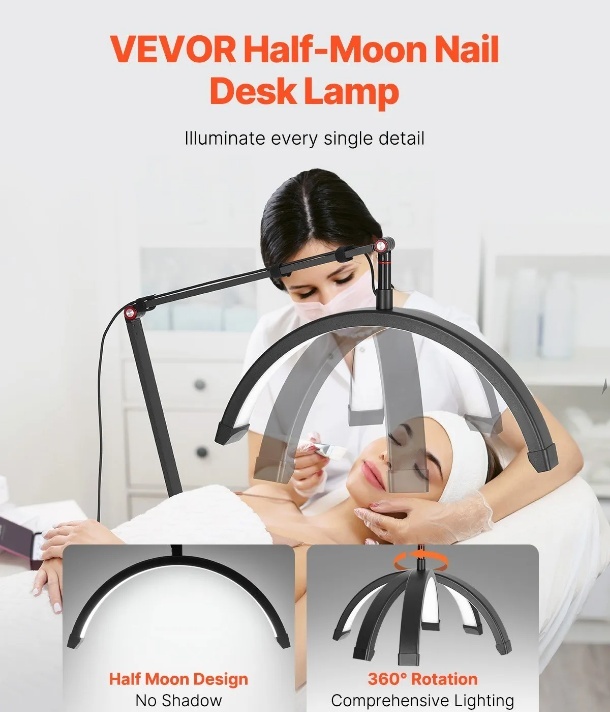 Visaptverošs apgaismojums: Pusmēness galda lampa nodrošina vienmērīgāku apgaismojumu, samazinot ēnas un atspīdumu. Tā nodrošina skaidru, bez kropļojumiem redzamu skatu jebkuras skaistumkopšanas vai nagu kopšanas procedūras laikā, nodrošinot optimālu redzamību precīzam darbam.