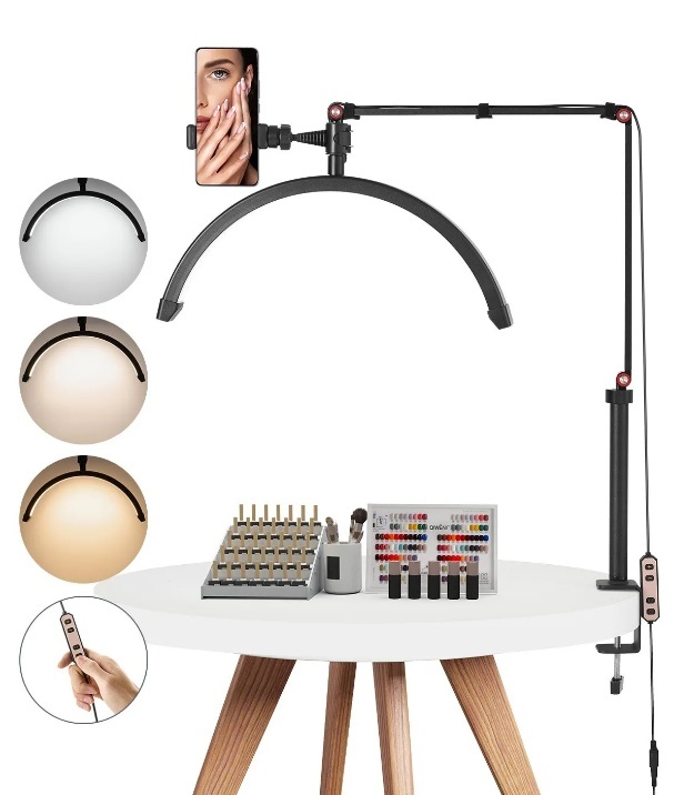 Kosmetoloģijas , manikīra galda lampa 20 W , piespraužama pusmēness formas lampa ar telefona turētāju , arkveida LED