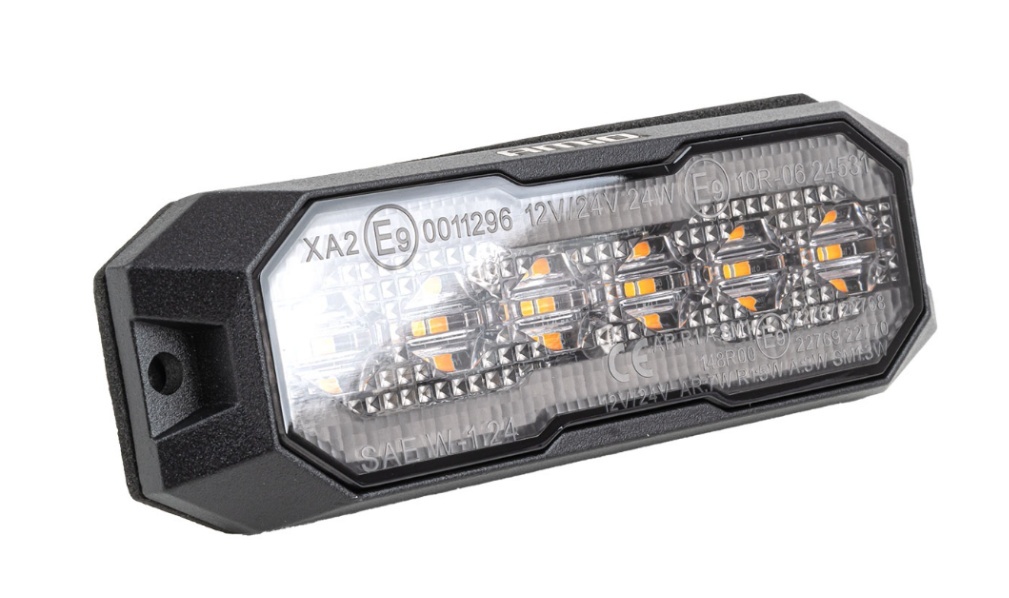 Pateicoties LED tehnoloģijai, lukturis nodrošina labu transportlīdzekļa redzamību gan no sāniem, gan no priekšpuses, kas ir svarīgi, strādājot ceļu satiksmē, būvlaukumos vai loģistikas zonās. Savietojams ar 12 V un 24 V sistēmām, to var uzstādīt plašā transportlīdzekļu klāstā – sākot no piegādes furgoniem līdz kravas automašīnām un specializētai tehnikai. 24 W jauda nodrošina skaidru gaismas signālu ar stabilu darbību un zemu enerģijas patēriņu.