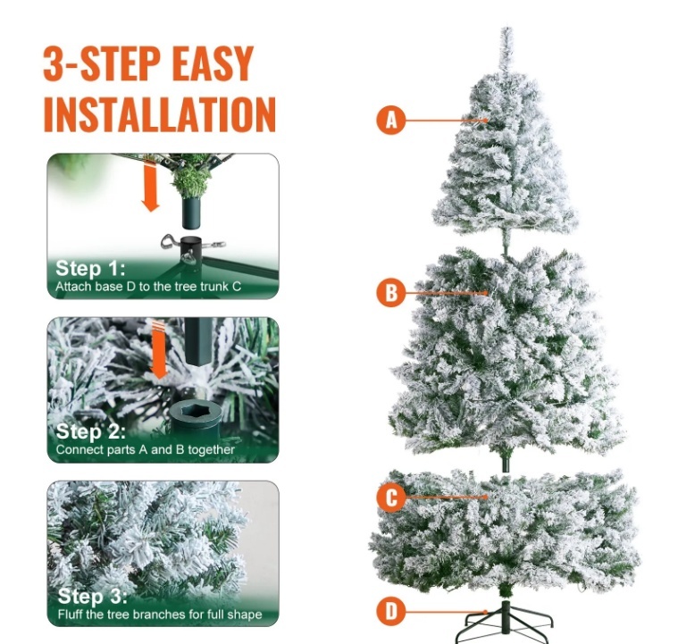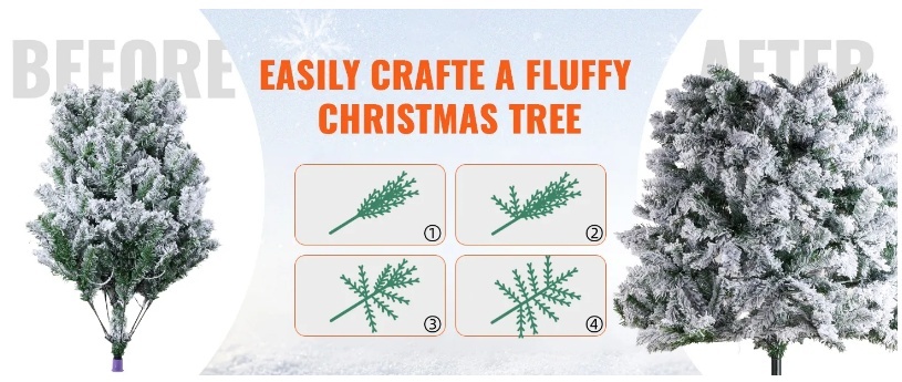 Atdzīviniet savus svētkus: Ienesiet svētku noskaņu un romantisku sezonu ar mūsu 7,5 x 4,2 pēdu sniega klāto Ziemassvētku eglīti ar 17,7 collu pamatnes diametru. Tā ir veidota ar izturīgiem zariem, uz kuriem var novietot visus jūsu iecienītākos rotājumus, padarot to par perfektu audeklu jūsu svētku radošumam.