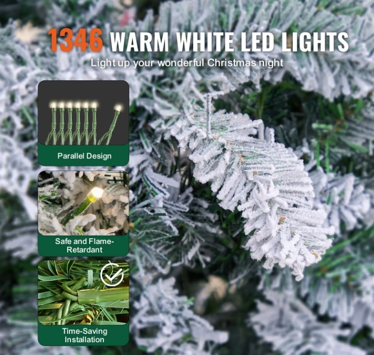 Silti baltas LED gaismas: Izbaudiet 550 silti baltas LED gaismas, kas jau ir piestiprinātas pie eglītes, ietaupot jūsu dārgo dekorēšanas laiku. Izstrādātas ar paralēlu apgaismojumu, pat ja viena LED gaisma nodziest, pārējās paliks iedegtas, izgaismojot jūsu brīnišķīgo Ziemassvētku nakti!