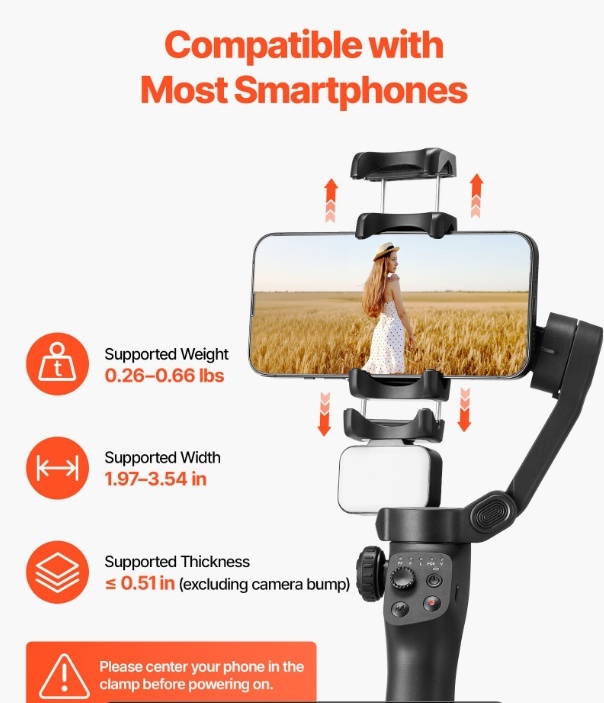 VEVOR 3 asu telefona stabilizators viedtālrunim ar magnētisko papildgaismu