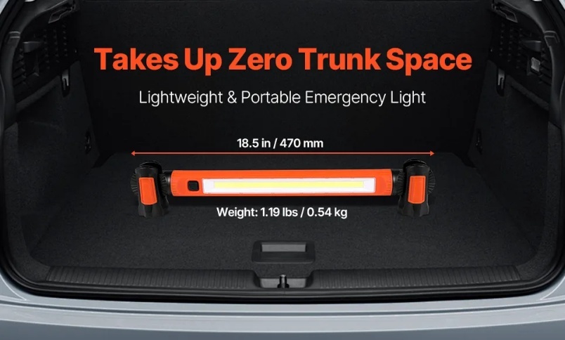Šis 12 W bezvadu zem motora pārsega apgaismojums nodrošina 1250 lūmenu spilgtumu ar 6000–6500 K krāsu temperatūru. Tam ir divi spilgtuma līmeņi un SOS režīms. 6000 mAh akumulators nodrošina 4 stundas ar augstu spilgtumu un 8 stundas ar zemu spilgtumu. Tas ir ideāli piemērots automašīnas remontam un ārkārtas situācijām.