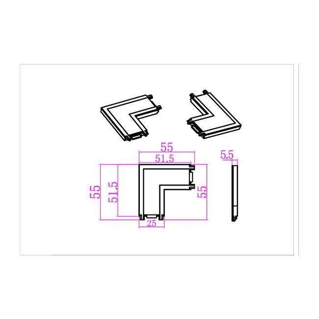 Luxo 48V virsmas montāžas sliedes savienotājs , L tips , melns