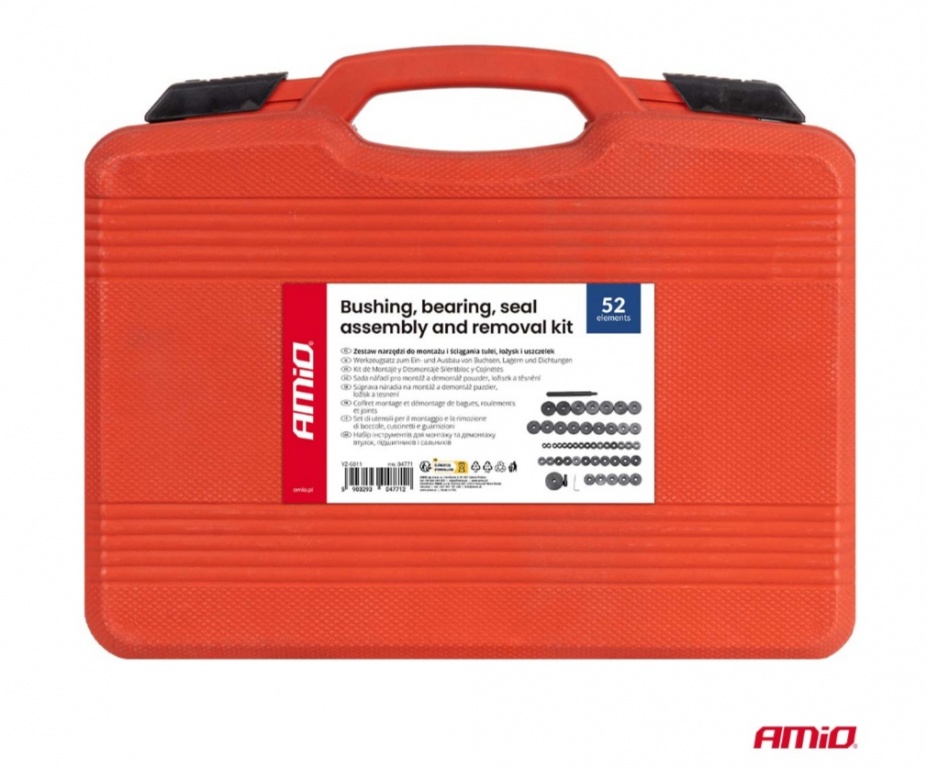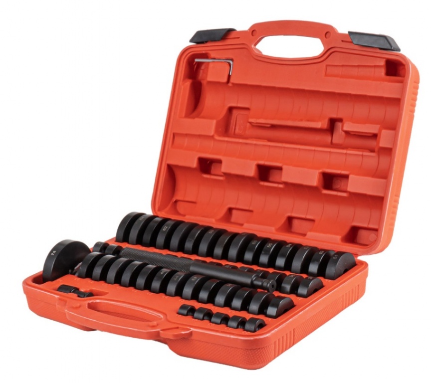 Pilnīga trieciena un presēšanas adapteru sistēma, kas paredzēta gultņu, bukses, blīvējumu un blīvju aksiālai uzstādīšanai un noņemšanai. 52 daļu komplekts garantē perfektu atbilstību gandrīz jebkurai detaļai, novēršot ligzdu un jaunu detaļu bojāšanas risku uzstādīšanas laikā.