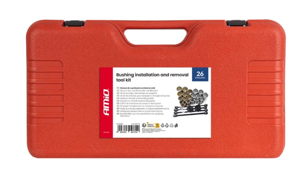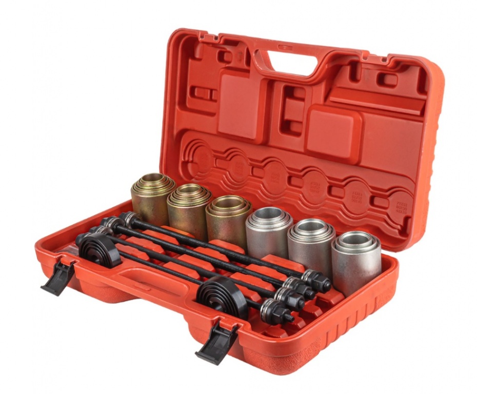 Profesionāls, universāls darbnīcas komplekts, kas paredzēts metāla-gumijas buksu, gultņu, blīvējumu un stūres šarnīra buksu uzstādīšanai un noņemšanai tieši no transportlīdzekļa. Sistēma novērš nepieciešamību pilnībā izjaukt piekares komponentus stacionārai presei, ievērojami samazinot darbības laiku.
