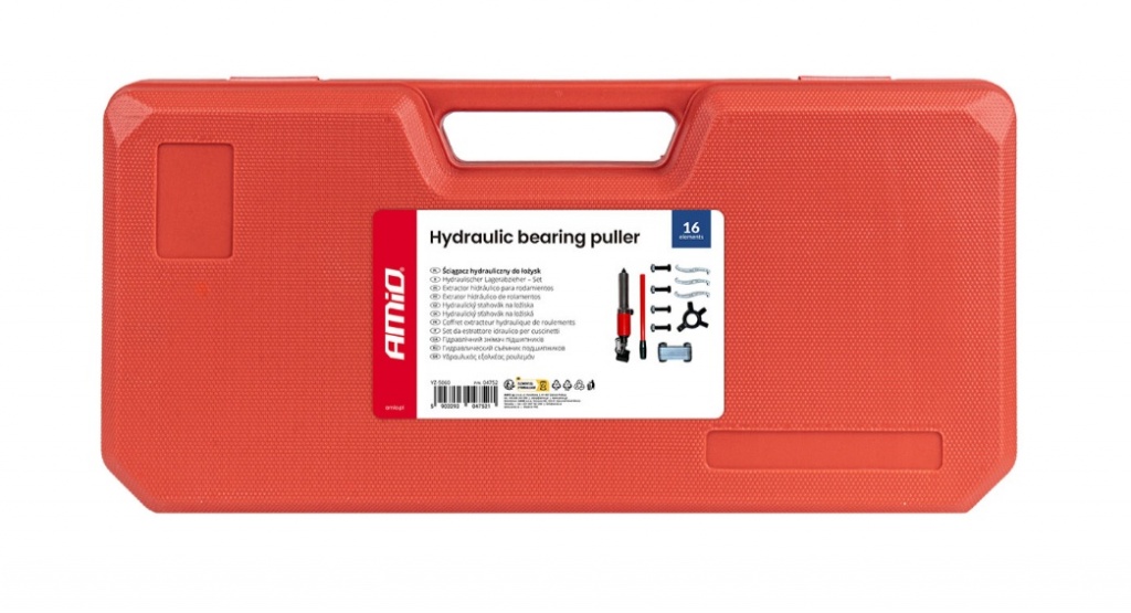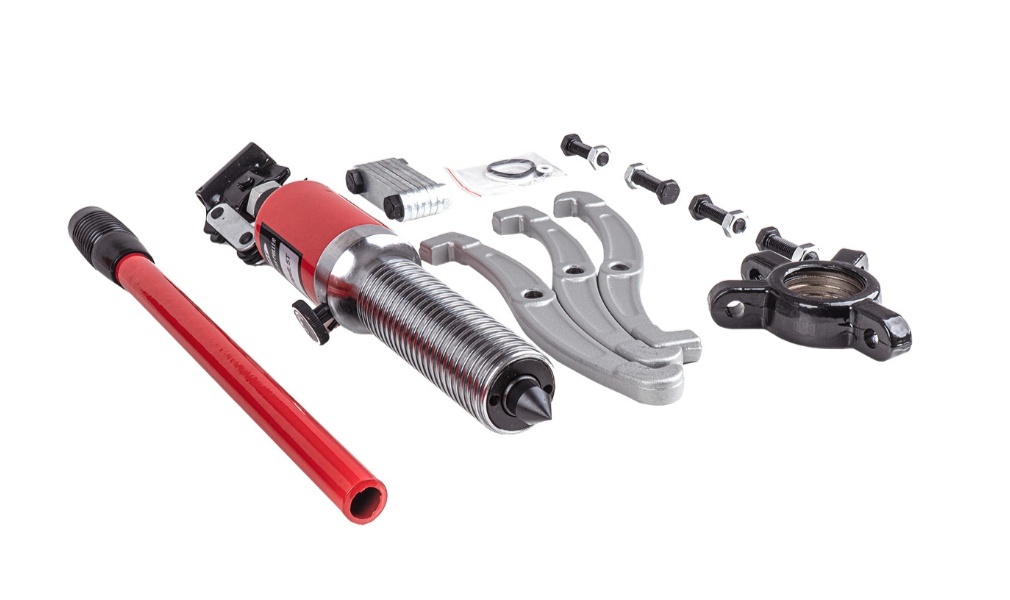 Komplektā ir 16 daļas, ieskaitot adapterus, sviras un piederumus, kas ļauj instrumentu universāli izmantot dažādiem gultņu diametriem un mašīnu tipiem. Izturīgā, ilgmūžīgā konstrukcija nodrošina izturību un noturību pret intensīvu lietošanu autoservisos un rūpniecisko servisa centros.