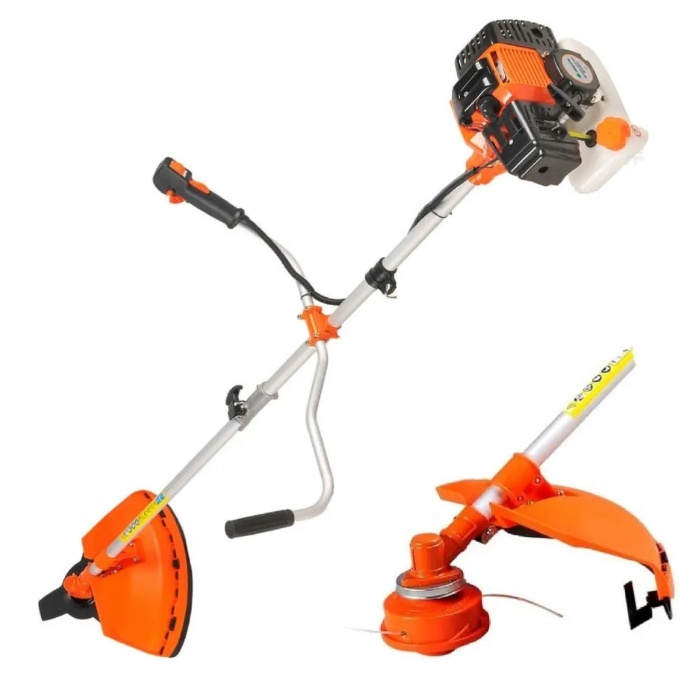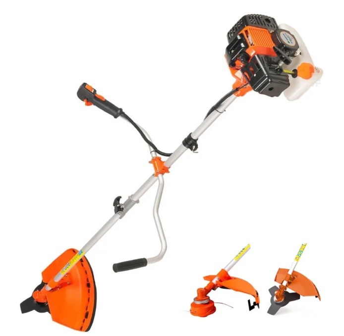 2 vienā pļaušanas sistēma — ietver gan neilona trimmera galviņu, gan 3 zobu tērauda asmeni daudzpusīgai darbībai. Lietotāji var viegli pārslēgties starp precīzu apgriešanu un jaudīgu pļaušanu.
