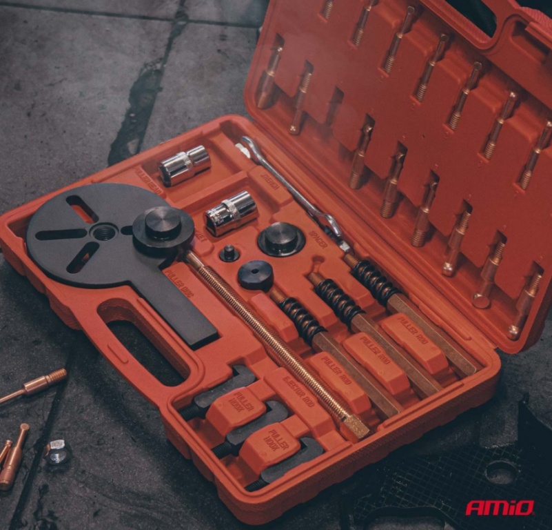 Vispilnīgākā demontāžas sistēma, kas paredzēta profesionālai tehnikas un kravas automašīnu apkopei, kā arī apkopei. Šis 44 daļu komplekts apvieno klasisko trīs sviru izvilcēju funkcionalitāti ar specializētu āķu adapteru precizitāti, ļaujot noņemt detaļas kritiski ierobežotās telpās.