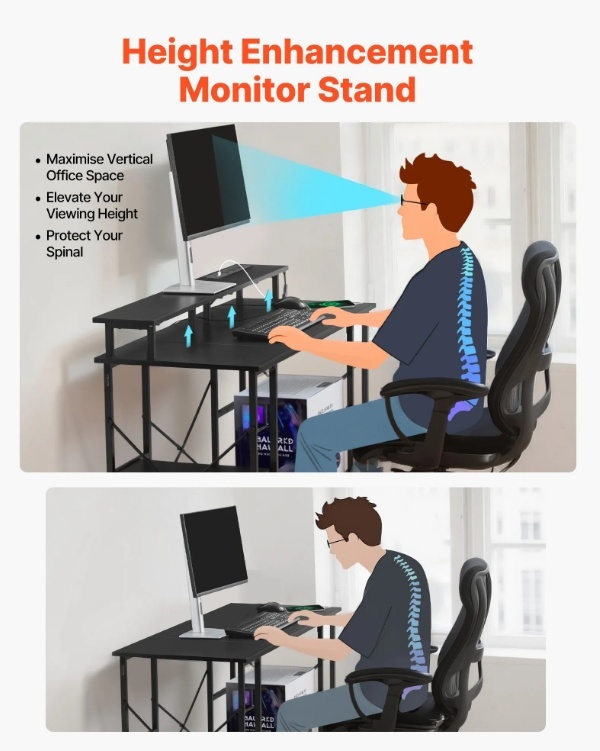 Daudzfunkcionāla lietošana: Monitora statīvs veicina pareizu stāju un palīdz uzturēt veselīgu kaklu mājās, lieliski piemērots mācībām, birojam. uzdevumiem un spēlēm, tas kalpo arī kā mācību galds, krāsa var atšķirties apgaismojuma dēļ