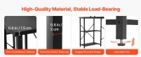 Pastiprināta rāmja konstrukcija: Izgatavots no augstas kvalitātes oglekļa tērauda rāmja ar rūsas izturīgu apdari, pastiprinātā pamatne nodrošina stabilu atbalstu ar mazāku šūpošanos, un 4 regulējamas kājas palīdz nolīdzināt biroja galdu uz nelīdzenām grīdām.