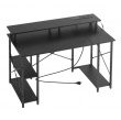120 cm datorgalds ar viedajām LED gaismām un strāvas rozetēm, apgriežams spēļu biroja galds ar monitora statīvu un divlīmeņu uzglabāšanas plauktiem, mācību telpa mājas birojam, melns.