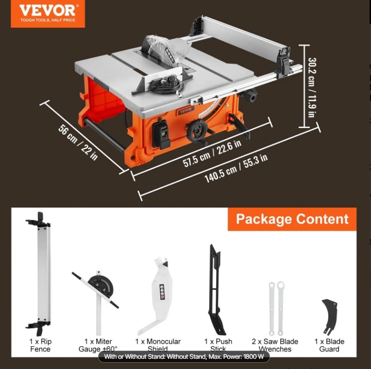 VEVOR 1800 W elektriskais galda zāģis , 4400 apgr./min.