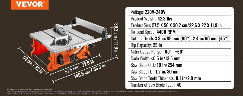 Mūsu galda zāģis ir aprīkots ar 8 ampēru motoru, lai ar ātrumu 4400 apgr./min. 25 collu garengriezuma jauda ļauj tam viegli pārzāģēt lielus kokmateriālus. Neatkarīgi no tā, vai jums ir jāstrādā ārā, jāizgatavo mēbeles darbnīcā vai jūs interesē amatieru kokapstrāde, VEVOR ir tas, kuram varat uzticēties.