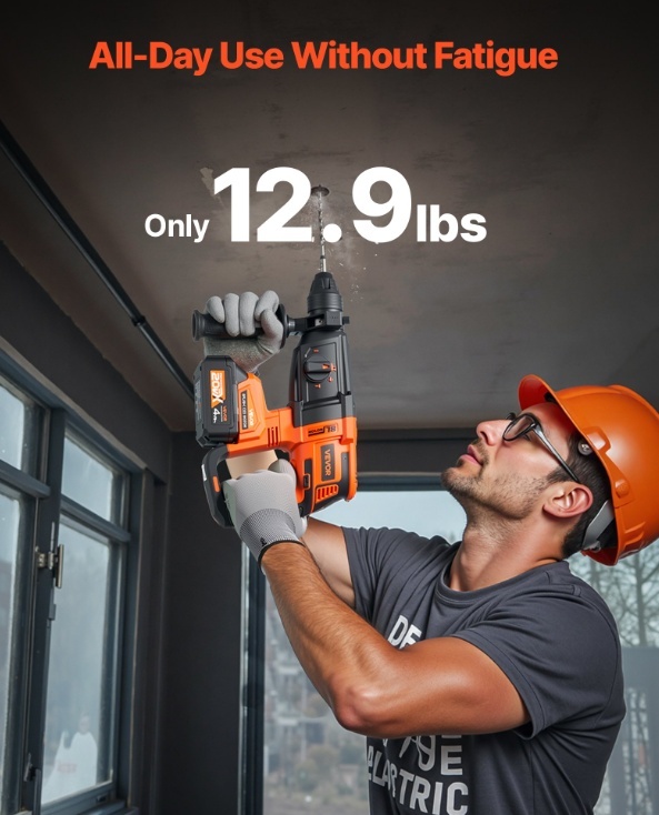 Jaudīgs un izturīgs motors: Šis rotācijas āmurs-urbjmašīna nodrošina 3 J trieciena enerģiju, kas ir izstrādāta ātrai un precīzai veiktspējai betona un metāla projektos. Karstumizturīgais motors ļauj strādāt ilgāk, nepārdedzinot instrumentu. Ar maksimālo urbšanas diametru 1,1 collas šis augstas veiktspējas rotācijas āmurs palīdz palielināt produktivitāti un uzlabot ikdienas darbplūsmu.