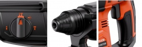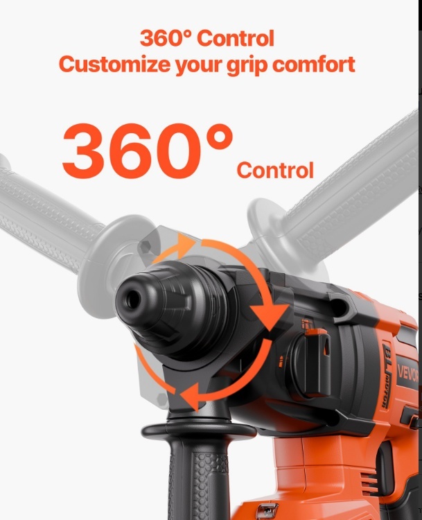 Izstrādāts izcilai vadībai: 360° regulējams rokturis nodrošina uzlabotu komfortu, samazinātu nogurumu un labāku kontroli ilgstošas lietošanas laikā. SDS-Plus patrona nodrošina ātru un drošu uzgaļu nomaiņu, lai jūsu projekti virzītos uz priekšu. Rūpīgi izstrādāta siltuma izkliedes struktūra pagarina instrumenta kalpošanas laiku. Gatavojieties strādāt ar pārliecību! Atpakaļgaitas funkcija nodrošina precīzu uzgaļu iedarbināšanu un vienkāršu stiprinājumu noņemšanu.