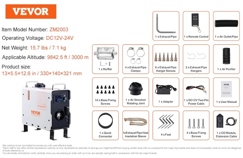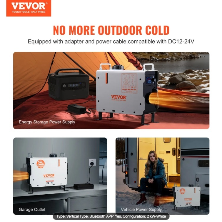 VEVOR 2KW dīzeļsildītājs, 12V/24V , universāls dīzeļdegvielas gaisa sildītājs ar Bluetooth lietotnes vadību