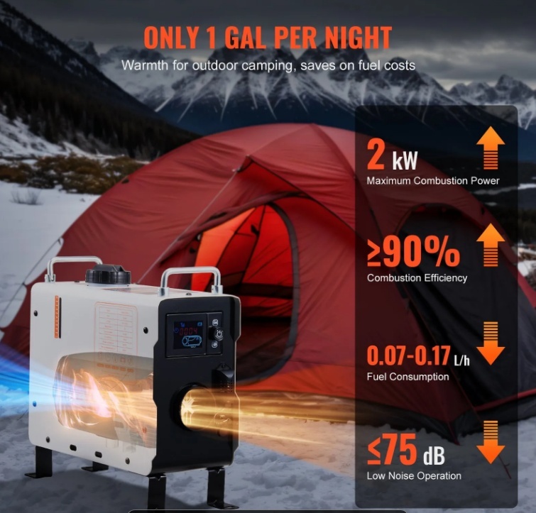 Klusa darbība: Šis dīzeļdegvielas sildītājs ir aprīkots ar augstākās kvalitātes trokšņa slāpētāju un degvielas sūkni, lai samazinātu troksni, darbojoties ≤75 dB. Izbaudiet siltu, nepārtrauktu miegu kempera uzturēšanās laikā vai kempingā, brīvu no aukstuma.