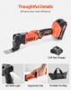 VEVOR akumulatora oscilējošais instruments, 20 V oscilējoša daudzfunkcionāla instrumenta komplekts ar 6 maināmiem ātrumiem 8500–17000 apgriezieniem minūtē, 3,2° oscilācijas leņķi, 2,0 Ah akumulators un lādētājs, 12 gab. zāģa piederumi un LED darba apgaismojums