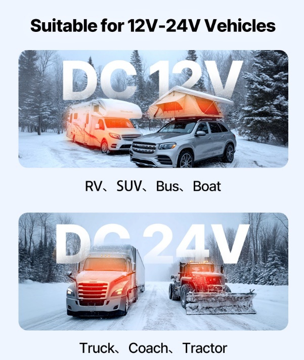Šis dīzeļdegvielas sildītājs, kas paredzēts darbam ar 12–24 V barošanas avotu, ir piemērots plašam transportlīdzekļu klāstam, tostarp vieglajām automašīnām, kravas automašīnām, laivām, ekskavatoriem un citiem. Atvadieties no saltajiem ziemas rītiem un saglabājiet siltumu neatkarīgi no tā, kur atrodaties.
