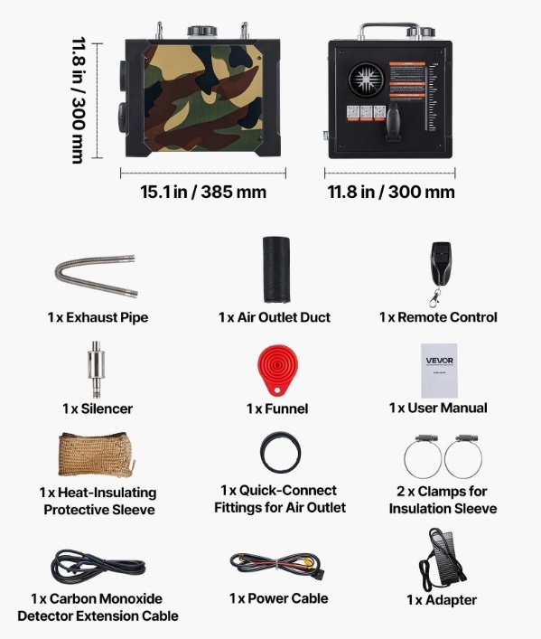 VEVOR dīzeļdegvielas sildītājs 8 kW, DC 12V/24V , ar Bluetooth lietotnes vadību , tālvadības pulti un LCD ekrānu , 7 l degvielas tvertne