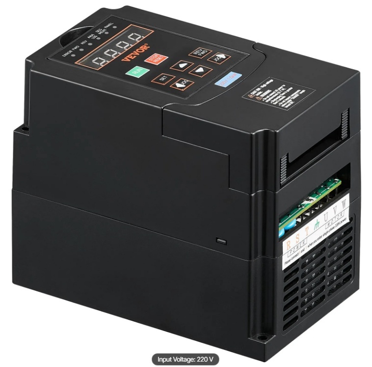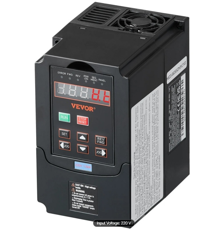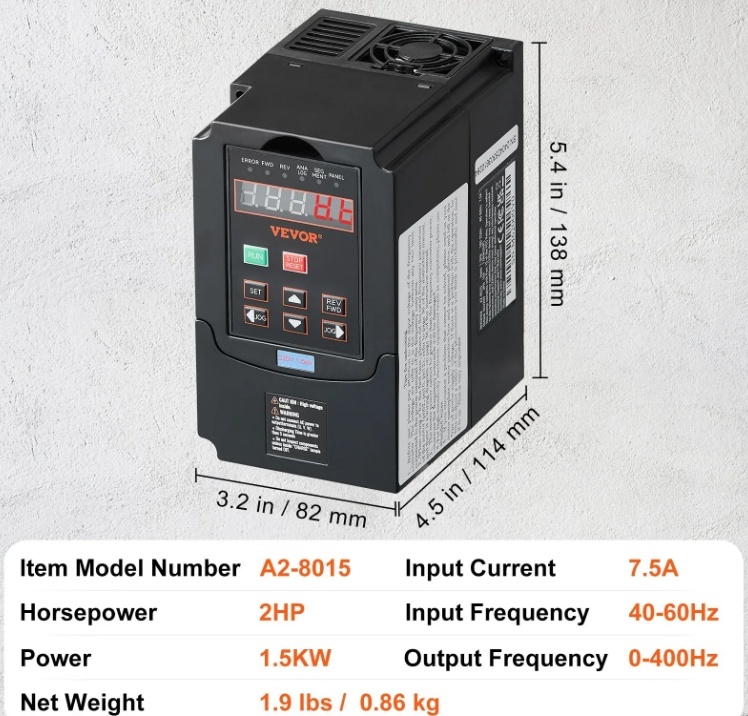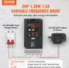 VEVOR frekvences pārveidotājs VFD 2 ZS , 1,5 kW , 7,5 ampēri , 220 V , 1 vai 3 fāžu ieeja uz 3 fāžu izeju, 0–400 Hz