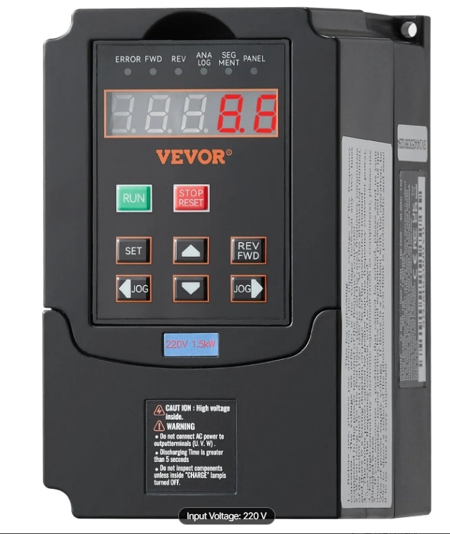 VEVOR VFD ir jaudīga 2 ZS mainīgas frekvences piedziņa. Tā nodrošina efektīvu motora vadību dažādām iekārtām. Šī piedziņa viegli apstrādā trīsfāžu motorus, tāpēc tā ir ideāli piemērota daudziem rūpnieciskiem lietojumiem. Spēcīgā 2 ZS jauda nodrošina vienmērīgu darbību. To var izmantot gan ar vienfāzes, gan trīsfāžu ieejām. Mēs varam strādāt ar CNC frēzēm, frēzmašīnām un citām iekārtām. Viena no tās galvenajām iezīmēm ir VEVOR daudzpusība; tā dizains uzlabo energoefektivitāti. Šī piedziņa izceļas kā uzticama izvēle motora ātruma kontrolei. Tā ir izstrādāta, lai apmierinātu dažādas rūpnieciskās vajadzības.