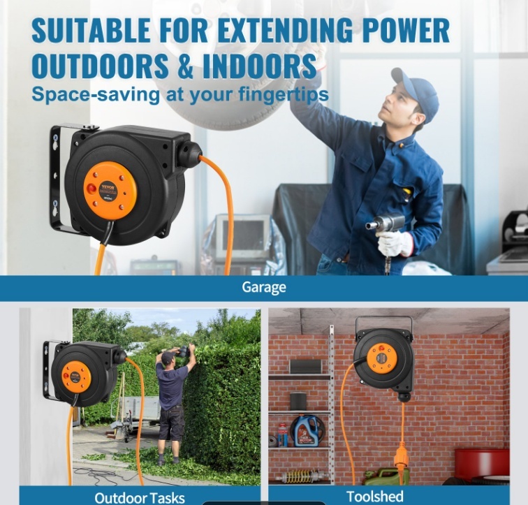 Daudzpusīgs un lietotājam draudzīgs: Lieliski piemērots montāžai pie griestiem vai sienas, mūsu ievelkamais vada spoles mehānisms ļauj viegli pavilkt un ievilkt vadu no jebkura virziena, atbrīvojot vērtīgu vietu. Atvadieties no sapinušajiem kabeļiem un paklupšanas riskiem — mūsu pagarinātāja vada spoles mehānisms visu kārtīgi glabā un nodrošina rokas stiepiena attālumā, padarot jūsu uzstādīšanu tīrāku un efektīvāku.