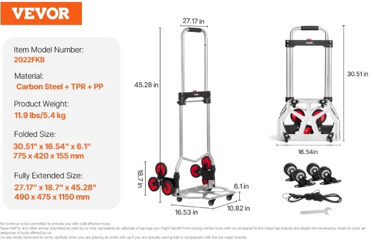 VEVOR kāpņu ratiņi 118kg