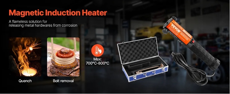 Šis indukcijas sildīšanas instruments izmanto augstfrekvences magnētiskos laukus, lai sildītu metālus bez atklātas liesmas, tādējādi samazinot ugunsgrēka risku. Precīza sildīšana nodrošina drošu un precīzu skrūvju un uzgriežņu izplešanos, samazinot apkārtējo detaļu bojājumus.
