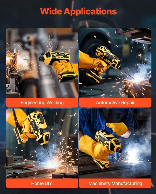 Jaudīga jauda: Šī VEVOR pārnēsājamā rokas metināšanas iekārta nodrošina 20–120 ampēru metināšanas jaudu ar 5 līmeņu strāvas regulēšanu precīzai kontrolei dažādos metināšanas uzdevumos. Ideāli piemērota dzelzs un tērauda materiālu metināšanai (maksimālais metināšanas biezums: 0,12 collas / 3 mm).