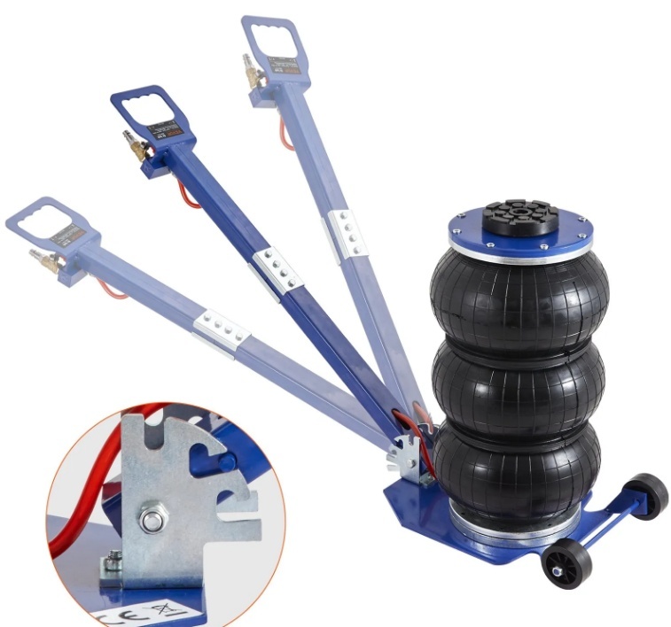 VEVOR pneimatiskais domkrats, 3 tonnu/3000 kg trīskāršā maisa pneimatiskais domkrats, gaisa spilvenu domkrats ar sešām tērauda caurulēm, pacelšanas augstums līdz 44,9 cm, 3–5 s ātras pacelšanas pneimatiskais domkrats, ar regulējamiem gariem rokturiem automašīnām, garāžām, remontam (zils)