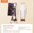 VEVOR spoguļa rotaslietu skapis , stāvspogulis ar uzglabāšanas vietu